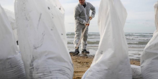 Мазут попал в прибрежные воды после крушения двух танкеров 15 декабря. В числе причин произошедшего называли опасную погоду и возможную ошибку экипажей.