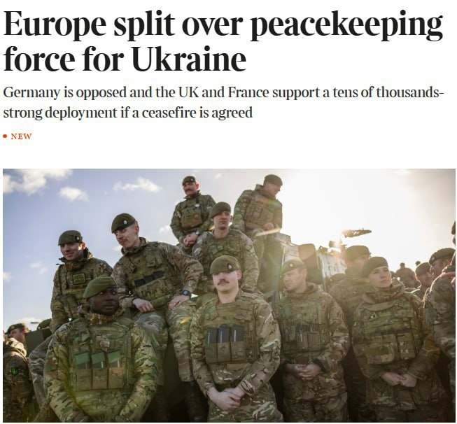 «Британия и другие европейские страны разделились во мнении по поводу целесообразности размещения масштабной миротворческой миссии на Украине… Великобритания, Франция и скандинавские страны поддерживают идею по возглавляемой Европой инициативе по отправке десятков тысяч военных в случае сделки по прекращению огня. Однако Германия и другие выступают против», — пишет The Times.