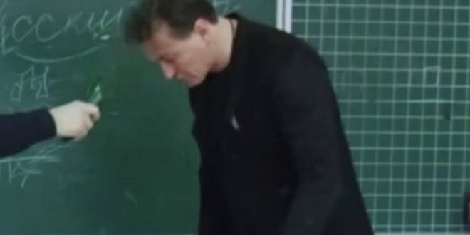 Безруков пришел в школу к дочери и показал трюк с разбиванием бутылки об голову