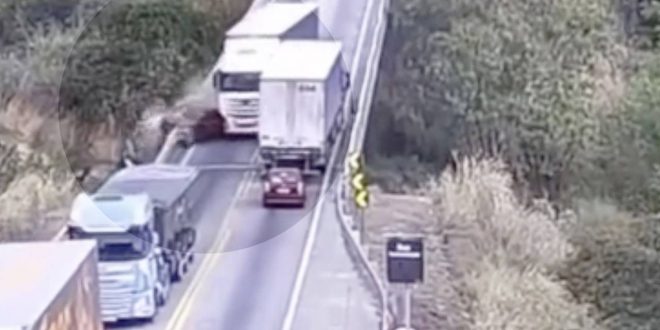 Инцидент произошел 26 июня на узкой дороге недалеко от бразильского города Сальвадор, штат Баия. На запись дорожной камеры попал момент, когда вылетевший на встречную полосу грузовик с трейлером ушел от лобового столкновения с другим грузовиком, вернулся в свой ряд и протаранил ехавший перед ним легковой автомобиль.