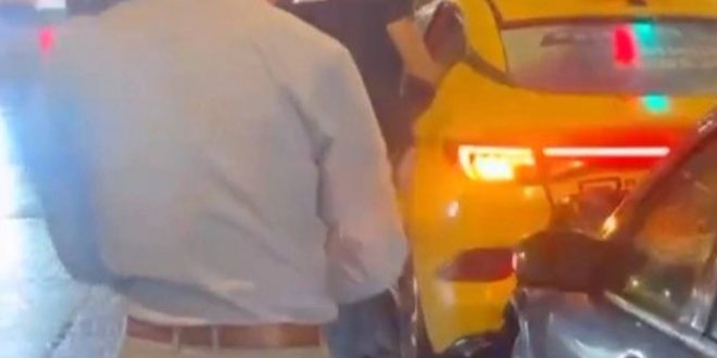 На кадрах видно врезавшийся в такси Mercedes C240 с красным номерным знаком. Ракурс съемки не позволяет рассмотреть повреждения, однако можно предположить, что они не серьезные.