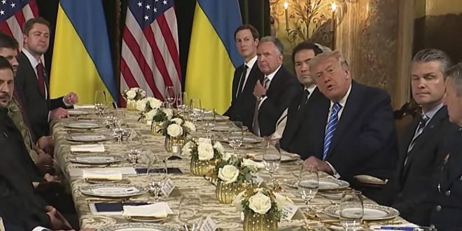 Встреча политиков прошла в столовой частной резиденции Мар-а-Лаго за закрытыми дверями. Зеленский сообщал, что намерен обсудить с американским коллегой территориальные уступки и экономику Украину.