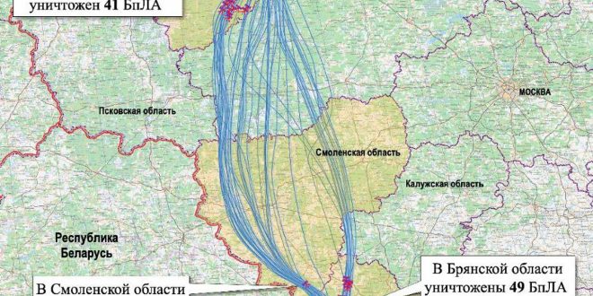 По сообщению ведомства, в Брянской области сбиты 49 дронов, а в Смоленской области удалось уничтожить один беспилотник. В Новгородской области, где располагается резиденция Путина, Вооруженные силы РФ сбили 41 БПЛА.