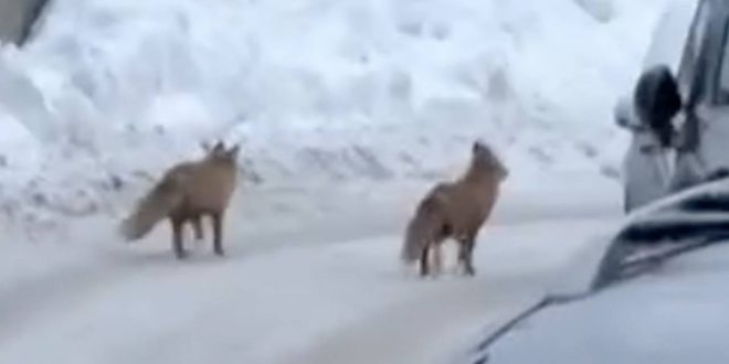 В московском районе Куркино сняли на видео двух лис