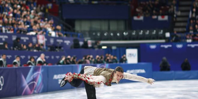 Российский флаг появился на трибунах во время выступления фигуриста Петра Гуменника. Трансляция соревнований ведется на Okko.