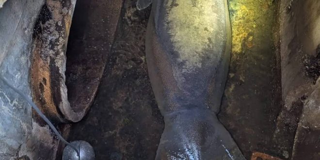 Животное, которое также называют морской коровой, неожиданно нашли геодезисты. Они осматривали ливневую канализацию перед ее ремонтом и увидели в сточных водах ламантина. Предполагается, что морская корова замерзла в естественной среде обитания, отправилась на поиски более теплых вод и застряла в канализации.