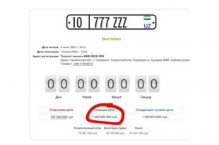 Читайте также »Самый дорогой номерной знак в истории Узбекистана ушел на торгах за 1,56 миллиарда сумов