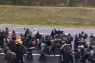 Шумная толпа нелегальных мигрантов приблизилась к польской границе