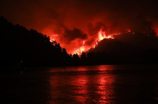 В Греции, спасающиеся от пожара люди, показали кадры с погибающим лесом. На видео, запечатленном очевидцами видно, как огонь окрасил небо в кроваво-красный цвет.