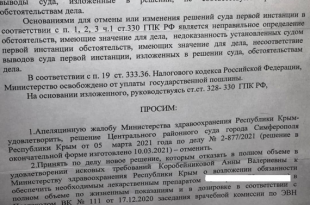 Сотрудники министерства здравоохранения Республики Крым пытаются отменить решение суда об обязательном обеспечении девушки-инвалида Анны Коробейниковой из Ялты необходимыми лекарствами. 5 марта Центральный районный суд Симферополя обязал региональный Минздрав закупить для девушки препарат от спинальной мышечной атрофии, назначенный врачебной комиссией. В Минздраве подали апелляционную жалобу, потребовали отменить это решение. Документ Анна опубликовала в соцсетях. “Просим <…> […] Сообщение Минздрав Крыма через суд отказывает девушке-инвалиду в необходимых лекарствах появились сначала на Информационное агентство "SM News".
