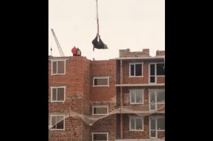 Живую корову в Казахстане подвесили на кране и подняли на крышу многоэтажки