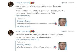 Telegram-канал с постами в Twitter президента США Дональда Трампа появился от неизвестных авторов. Утверждается, что он принадлежит политику, но доказательств этого нет. Ранее у главы государства был удалён Twitter-аккаунт. Подпись на канале гласит «45-й президент США» и на него подписались порядка 300 тысяч человек. В дальнейшем на канале появилась ссылка на сервис мошенников. Аккаунт Дональда […] Сообщение В Telegram появился канал с постами Дональда Трампа появились сначала на Информационно-аналитическое издание SM.News.